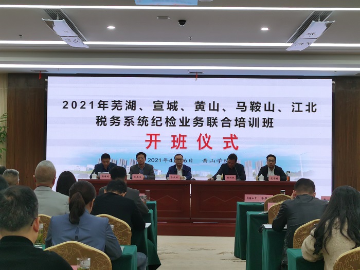 4月26日下午,我校举办的2021年芜湖、宣城、黄山、马鞍山、江北税务系统纪检业务联合培训班顺利开班。各参训单位带队领导、我校继续教育工作人员和参训的96名学员出席了开班仪式,开班仪式由宣城市税务局党委委员、纪检组长陈利民主持。